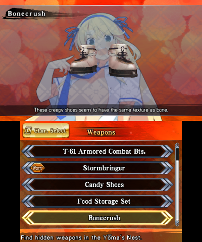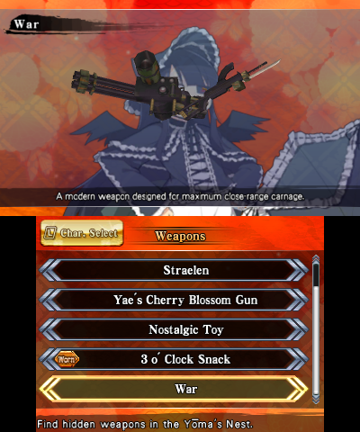 It doesn’t use all the weapons.  It only fires out black energy balls by swinging its rifle, something Mirai could do with her umbrella in Shinovi Versus, but not in this game.  Since you can bat projectiles back at enemies in Senran Kagura 2, that’s the best tactic for fighting it.