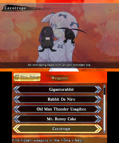 There's an interesting translation story regarding the youma general's weapons.  In Japanese, their names are single kanji for something dark or evil.  Single kanji doesn't translate well into English, so XSEED instead got creative with naming them.  Very special thanks to XSEED's Ryan Graff for giving me the untranslated names of the weapons.