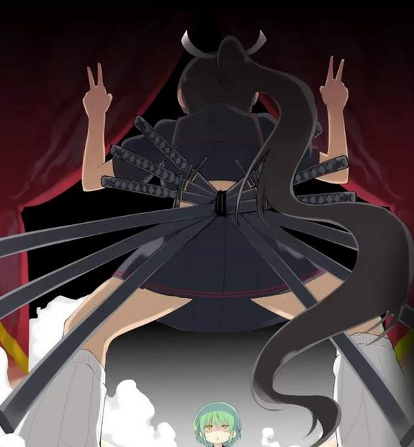 The sixth seat is based on Hikage and has red hair in what one might call an “emo” haircut.  I think the haircut sort of representins Hikage’s reclusiveness and social problems, with the red hair being a unique color to the other general’s just like Hikage’s green hair is to everyone else.  Its weapons are a set of black knives with the kanji "" in Japanese, pretty much meaning the source of a problem or a root of evil. In English it's called Pestilence, the Horseman of disease, which is kind of similar in that disease is the most baseline and natural ways people die.  It's neat how well the Horseman of the Apocalypse naming lined up with the kanji.