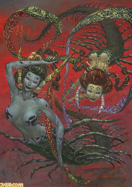 Mikami’s design comes from a couple of sources.  Their names come from Mt. Mikami, where in the tale Tawara Touda the famed warrior Fujiwara no Hidesato slays a giant centipede.  The decision to make them half women was likely to keep with the theme of the other youma being girls and human-centipede hybrids are a rather common type of monster in Japanese media, like the very first demon in Inuyasha.